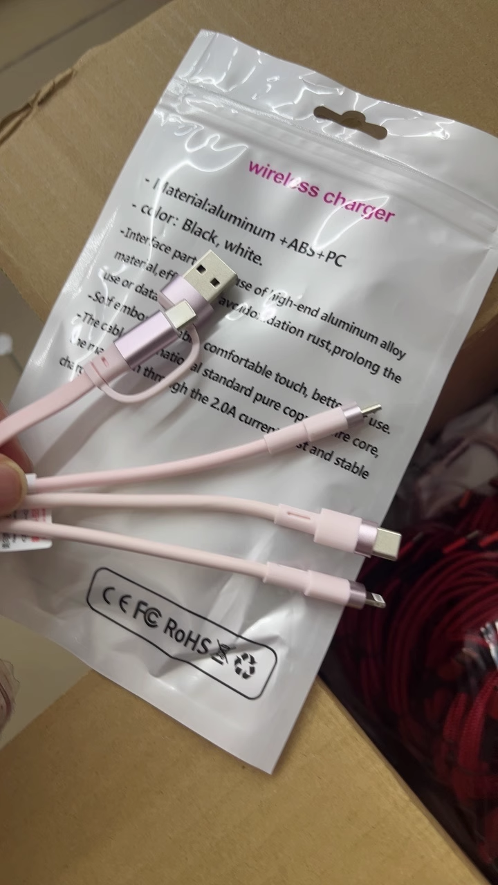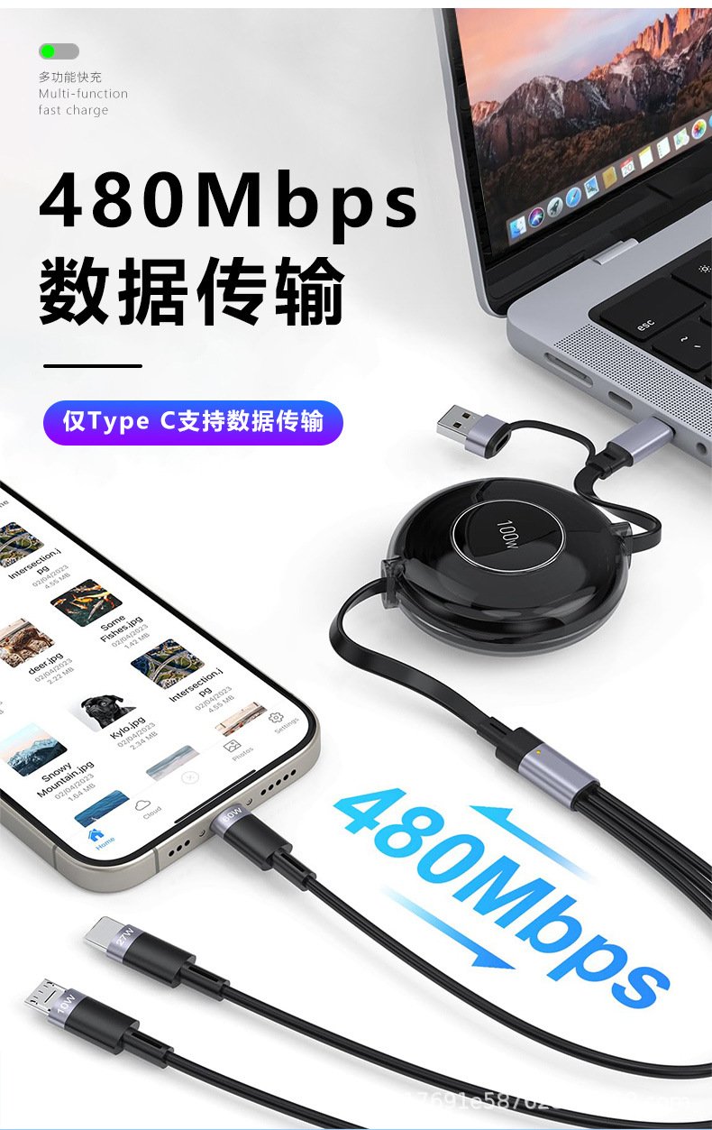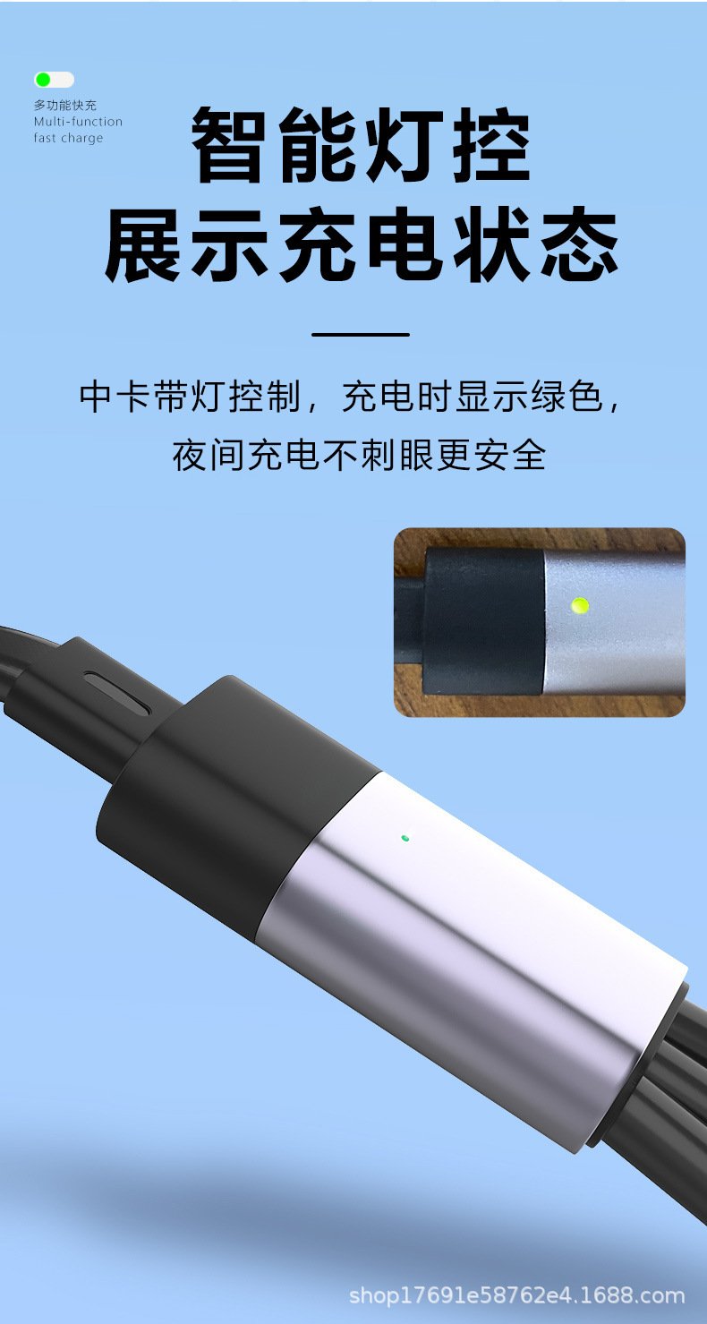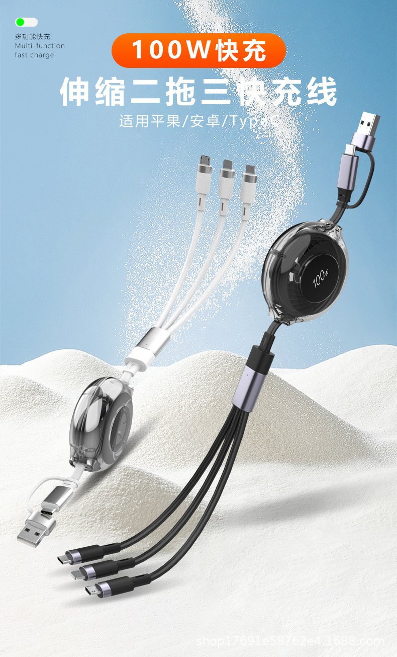 Two-to-three retractable data cable Android TYPE-C four-in-one mobile phone charging cable suitable for iPhone | Huawei