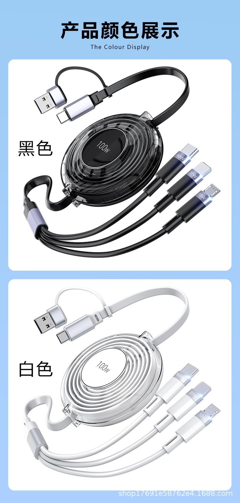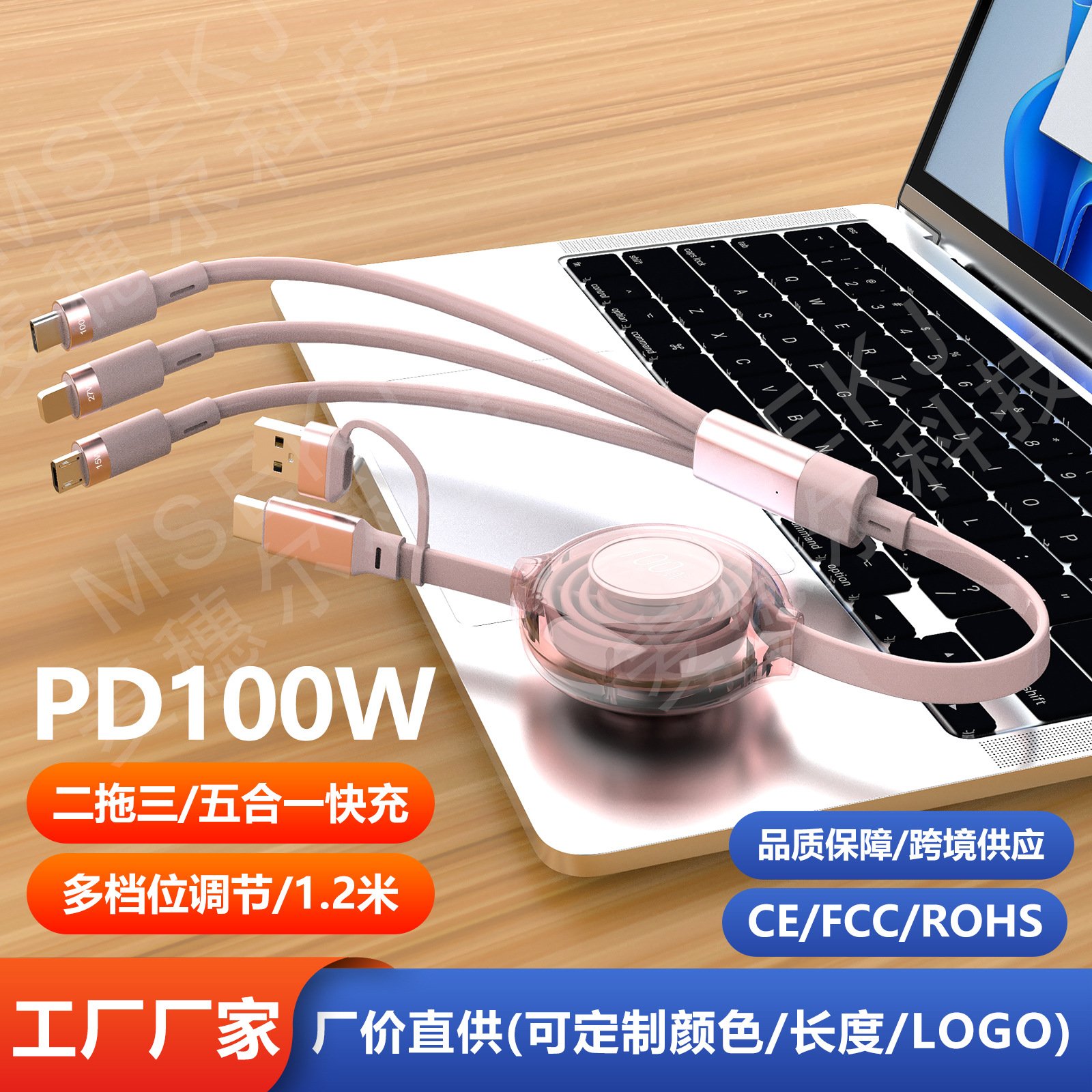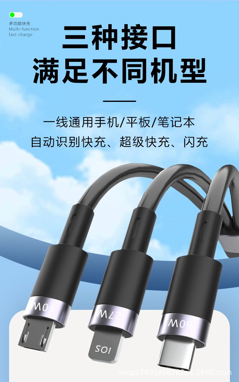 Two-to-three retractable data cable Android TYPE-C four-in-one mobile phone charging cable suitable for iPhone | Huawei