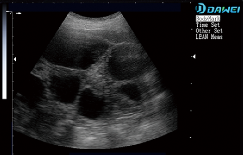 2. Scanning mode: convex array/line array 3. Operation interface: The operation interface supports six languages: Chinese, English, French, Russian, Spanish, and Portuguese. 4. Display mode: B, B+B, 4B, BM, M; 5. Body position marking: ≥ 50 kinds; 6. Frequency range: 3.5MHz (2.0/2.5/3.5/5.0), 5.0MHz (4.5/5.0/6.5/7.5), 6.5MHz (4.5/5.5/6.5/7.5), 7.5MHz (5.5/6.5/7.5/9.0) 7. Image mirroring: left and right mirroring, up and down flipping 8. Routine measurements: distance, circumference, area; 9. Obstetric measurements: Obstetric measurements of 7 animals: Pig (GSD, LOIN), cow (B D, B PD, CRL, C WW, TD), dog (BD, CRL, GSD, HD). Horse (B PD, CRL, BOD, GSD), Cat (BD, HD), Camel (BPD), Sheep (BPD, CRL, TD, USD); |